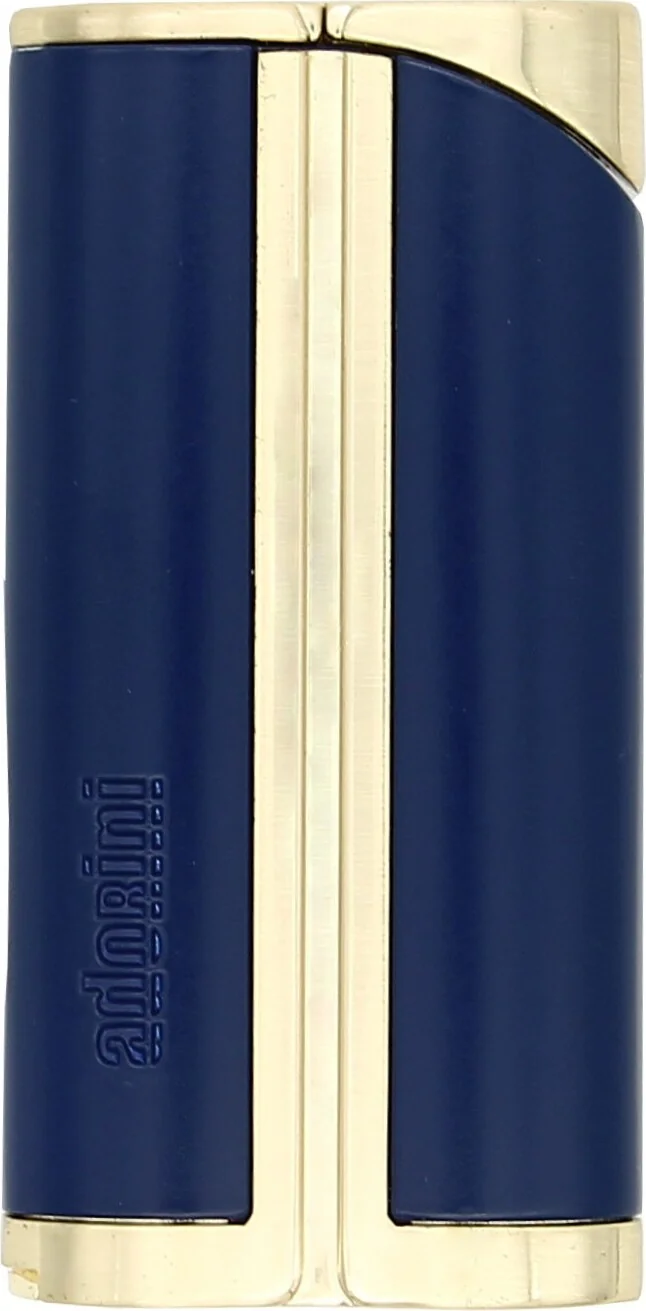 Accendino a Fiamma a Getto Singolo Curvo adorini Blu & Color Oro Giallo con Punzone per Sigari Integrato