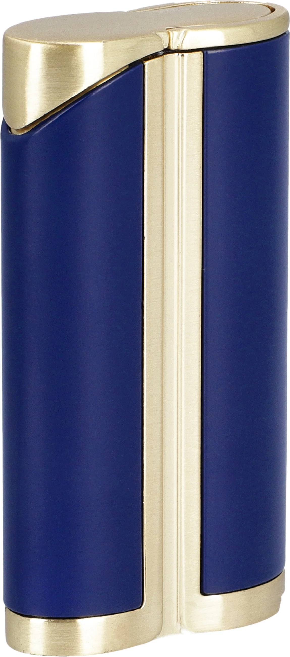 - Elegante accendino a getto nella moderna tonalità blu con accenti giallo-oro