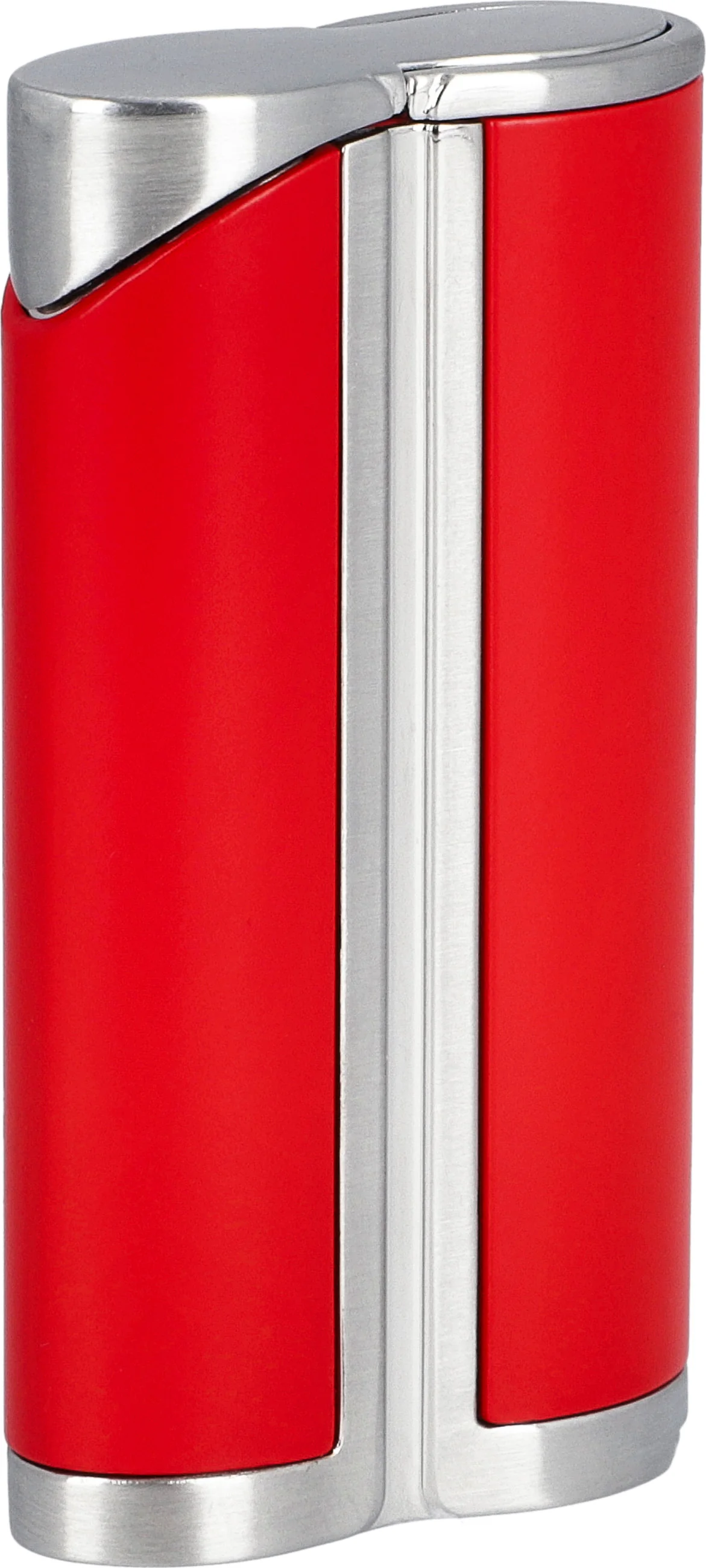 Accendino a Fiamma a Getto Singolo Curvo adorini Rosso / Color Argento Satinato con Punzone per Sigari Integrato