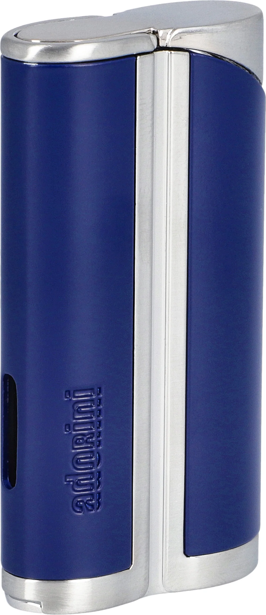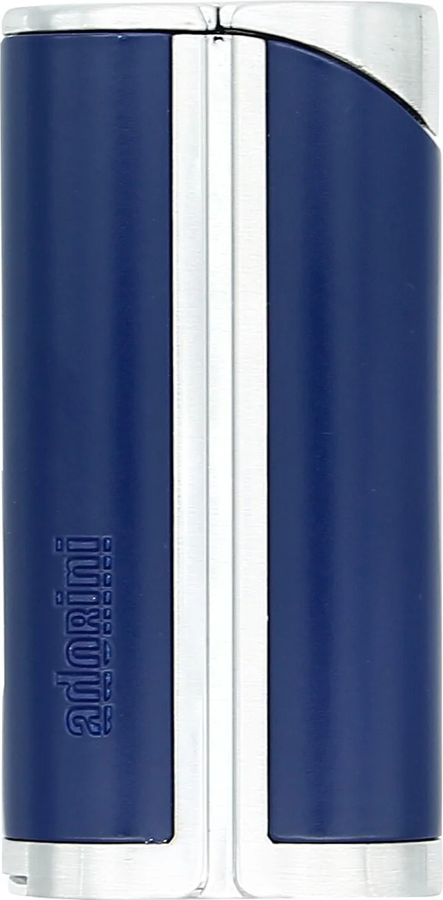 Accendino a Fiamma a Getto Singolo Curvo adorini Blu / Color Argento Satinato con Punzone per Sigari Integrato