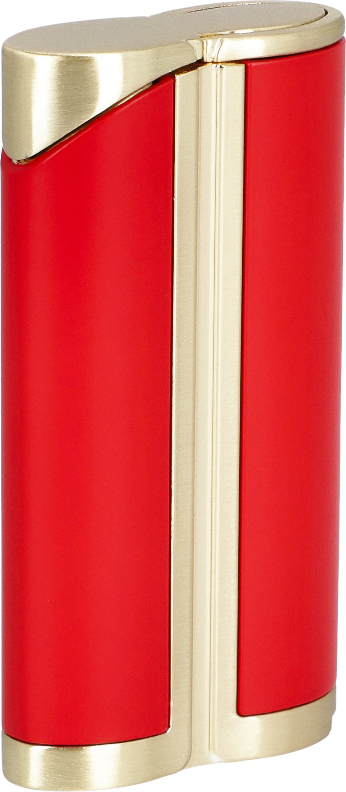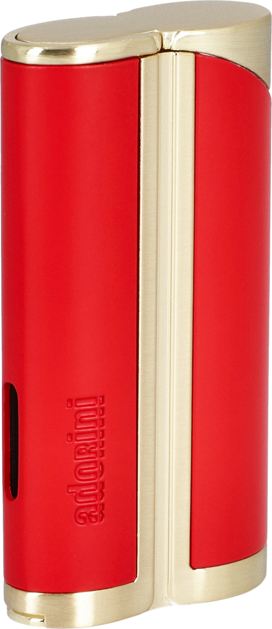 Accendino a Fiamma a Getto Singolo Curvo adorini Rosso / Color Oro Satinato con Punzone per Sigari Integrato