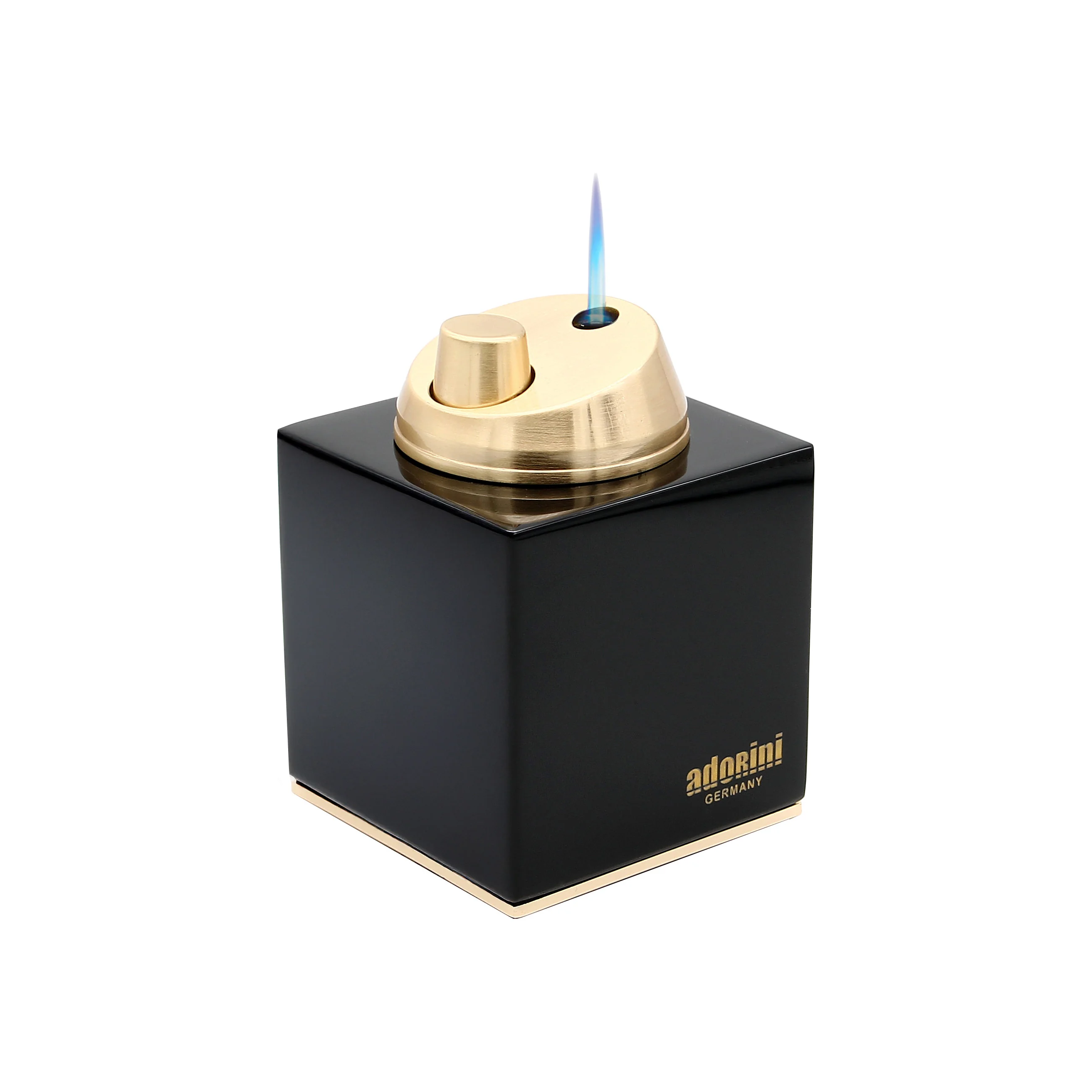 Accendino adorini con Fiamma a Getto da Tavolo Nero Lucido Oro