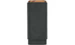 Il lussuoso astuccio è splendidamente rivestito della migliore pelle scamosciata nera proveniente dall'India, che si evolverà con ogni utilizzo, mostrando gradualmente il suo carattere unico. Il vero legno adorna la parte superiore del coperchio protettivo e la parte inferiore della custodia, catturando l'attenzione con una splendida finitura laccata lucida. L'interno è rivestito con un' impiallacciatura di cedro spagnolo per offrire a 2 o 3 sigari un ambiente sicuro e protetto. Un ulteriore aiuto per evitare che i sigari subiscano danni inutili è dato da un sistema di divisori che aiuta a mantenere i sigari immobili durante il trasporto.