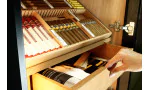 Cassetto per accessori per sigari al centro dell'armadio su guida in acciaio inossidabile con spazio di ventilazione sulla parete posteriore