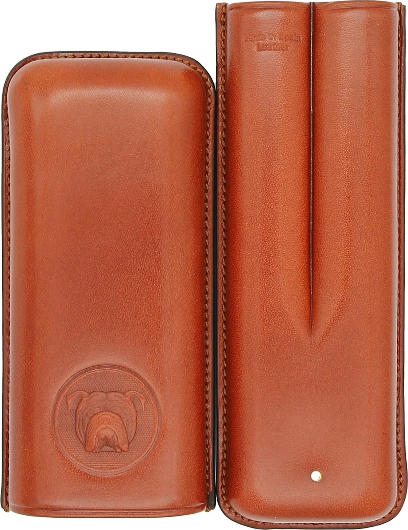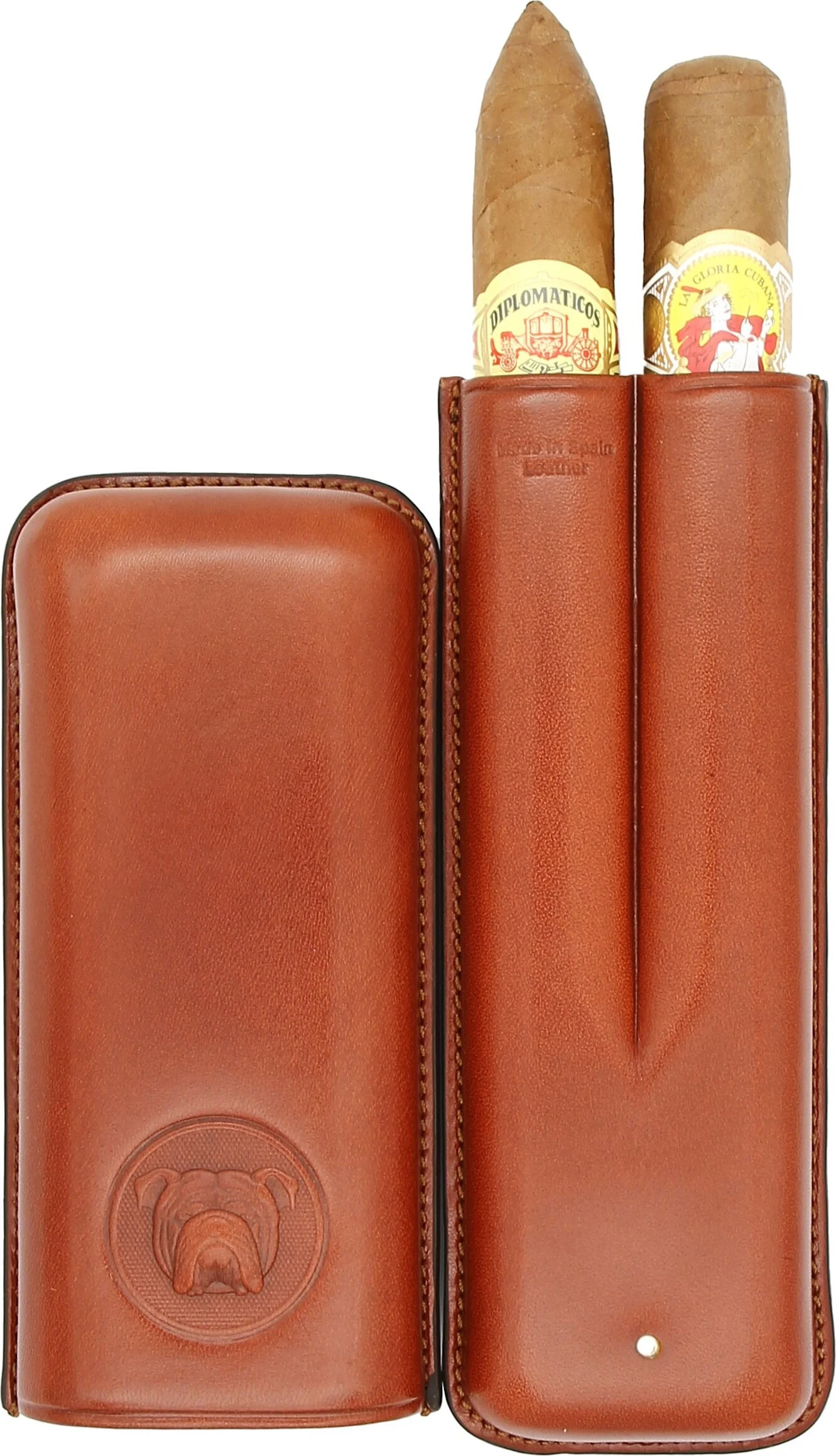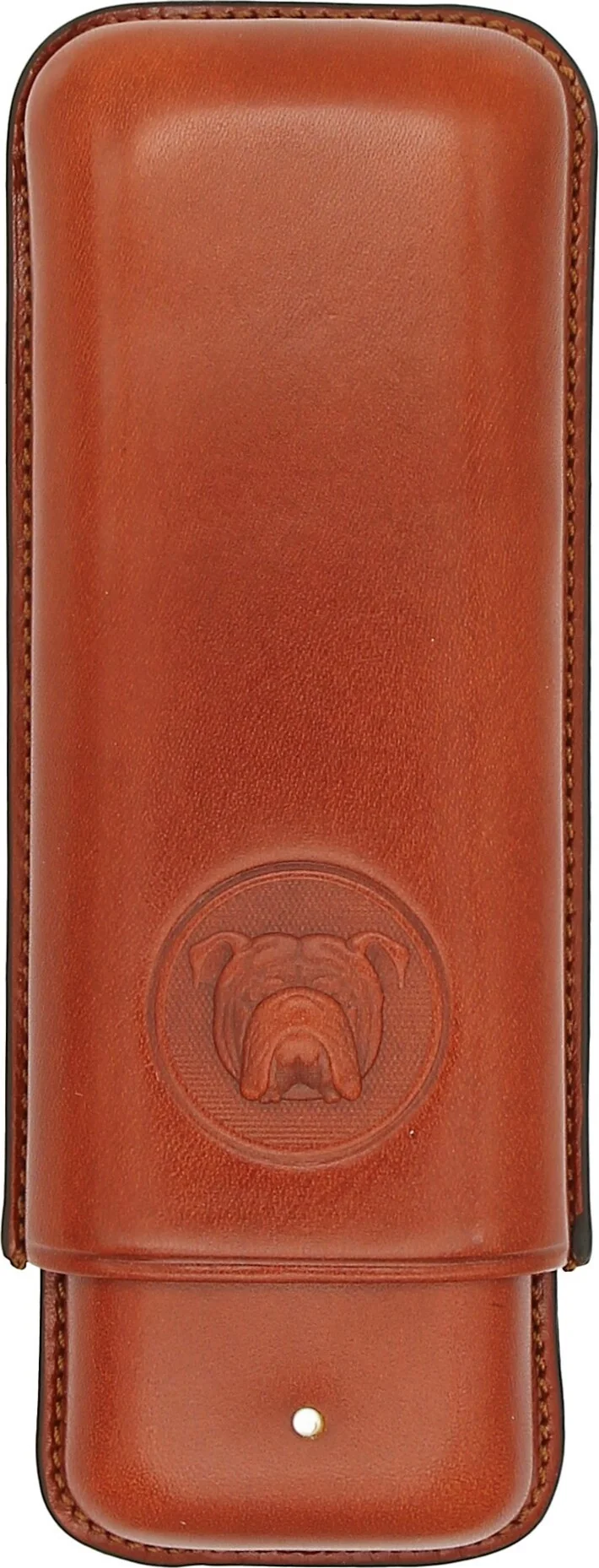 L'astuccio per sigari Bulldog by Dunhill Corona in un sofisticato colore marrone che ricorda il cognac unisce eleganza e robustezza in un accessorio di alta qualità. Realizzato in vera pelle e prodotto in Spagna, colpisce per l'artigianato classico e il design accattivante.