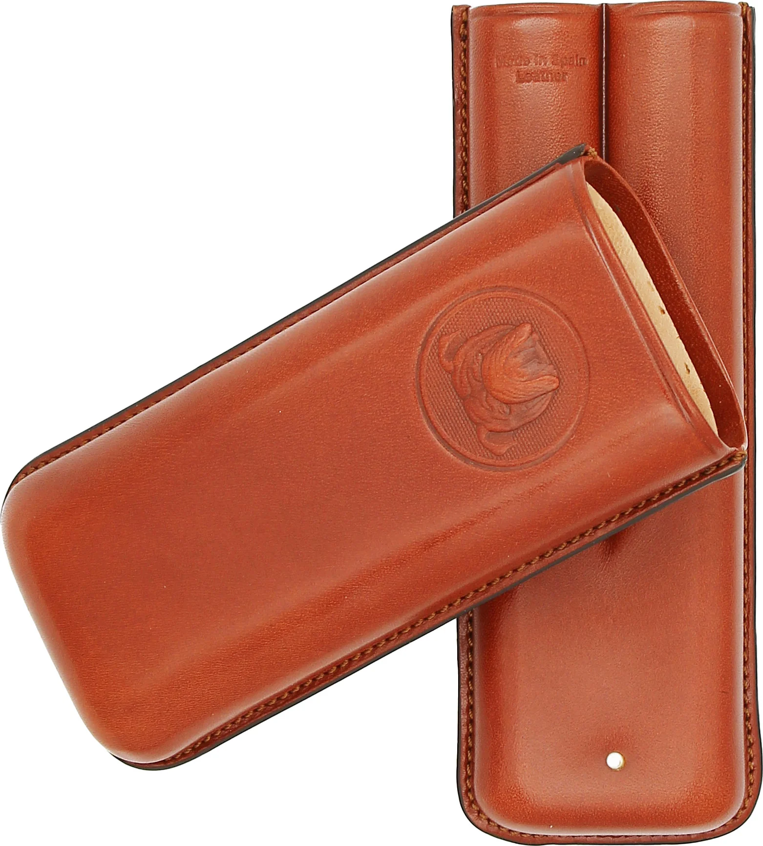 All'interno, l'astuccio offre spazio per due sigari di dimensioni diverse. Le pratiche tacche garantiscono una presa sicura durante il trasporto. L'interno è rivestito in morbida pelle chiara e protegge i sigari in modo affidabile.