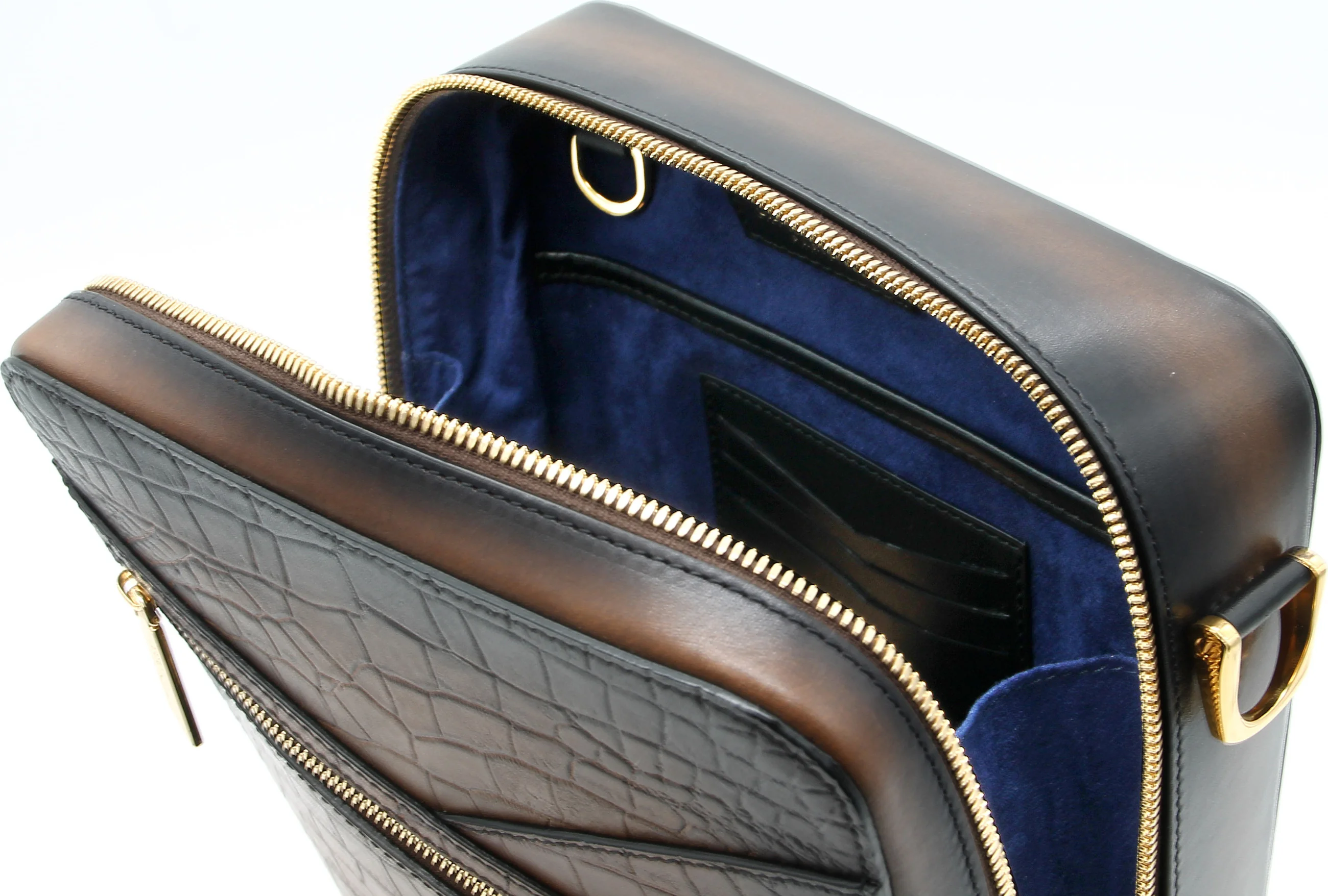 - Realizzata con la migliore pelle italiana con un effetto coccodrillo in rilievo.