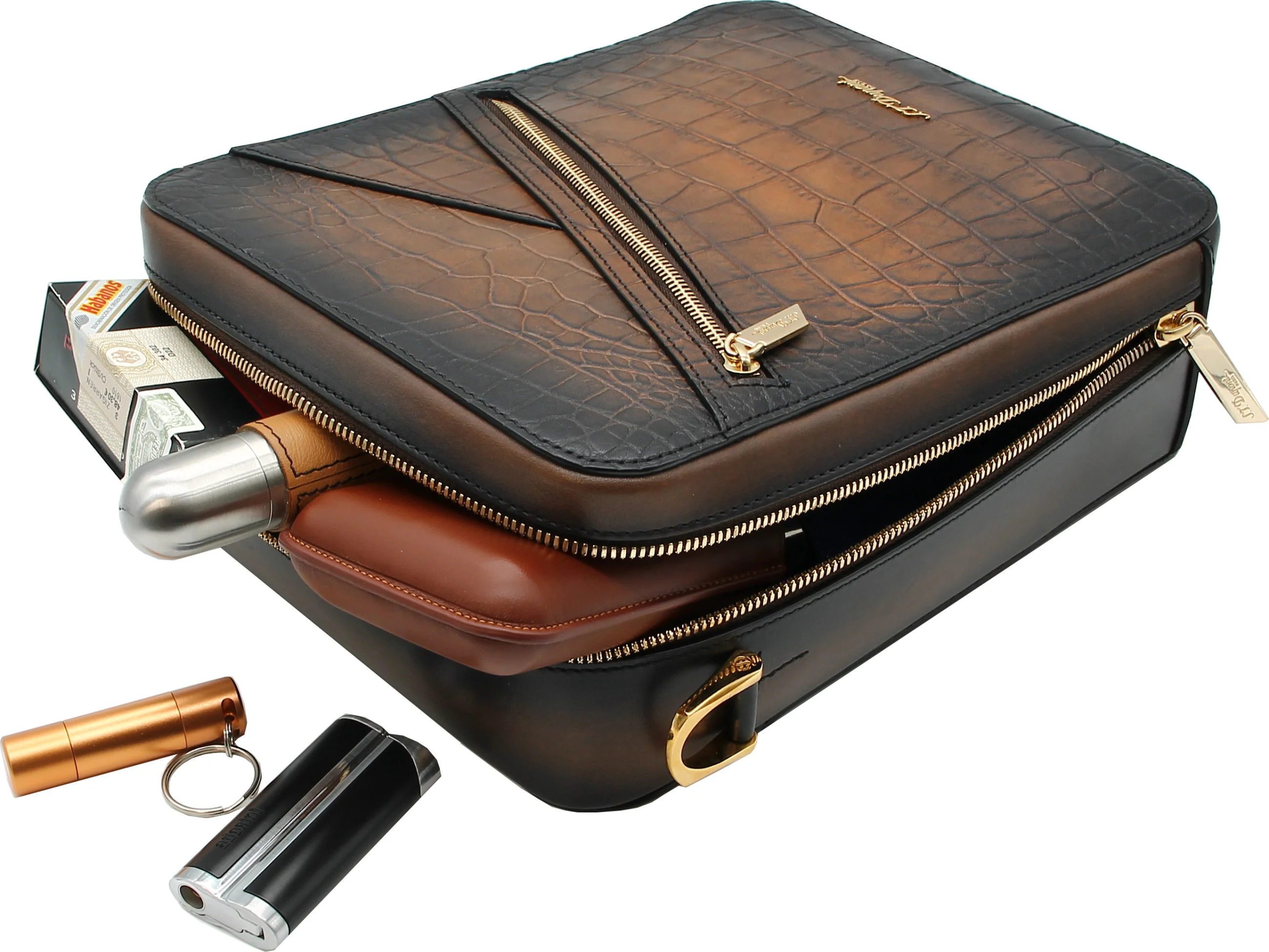 S.T. Dupont è un rinomato produttore francese di beni di lusso, noto per i suoi accessori di alta qualità come accendini, strumenti di scrittura, pelletteria e altro ancora. Sin dalla sua fondazione nel 1872, l'azienda è stata sinonimo di eccezionale artigianalità e innovazione. Gli articoli in pelle di S.T. Dupont sono caratterizzati da alta qualità, design senza tempo e funzionalità e sono ricercati in tutto il mondo.