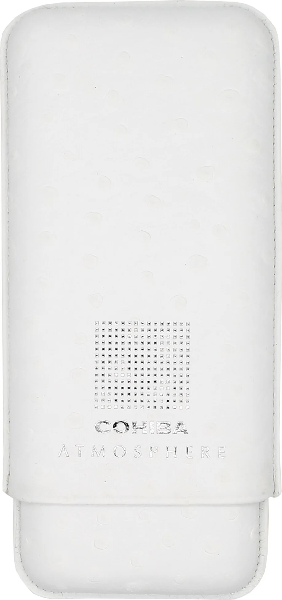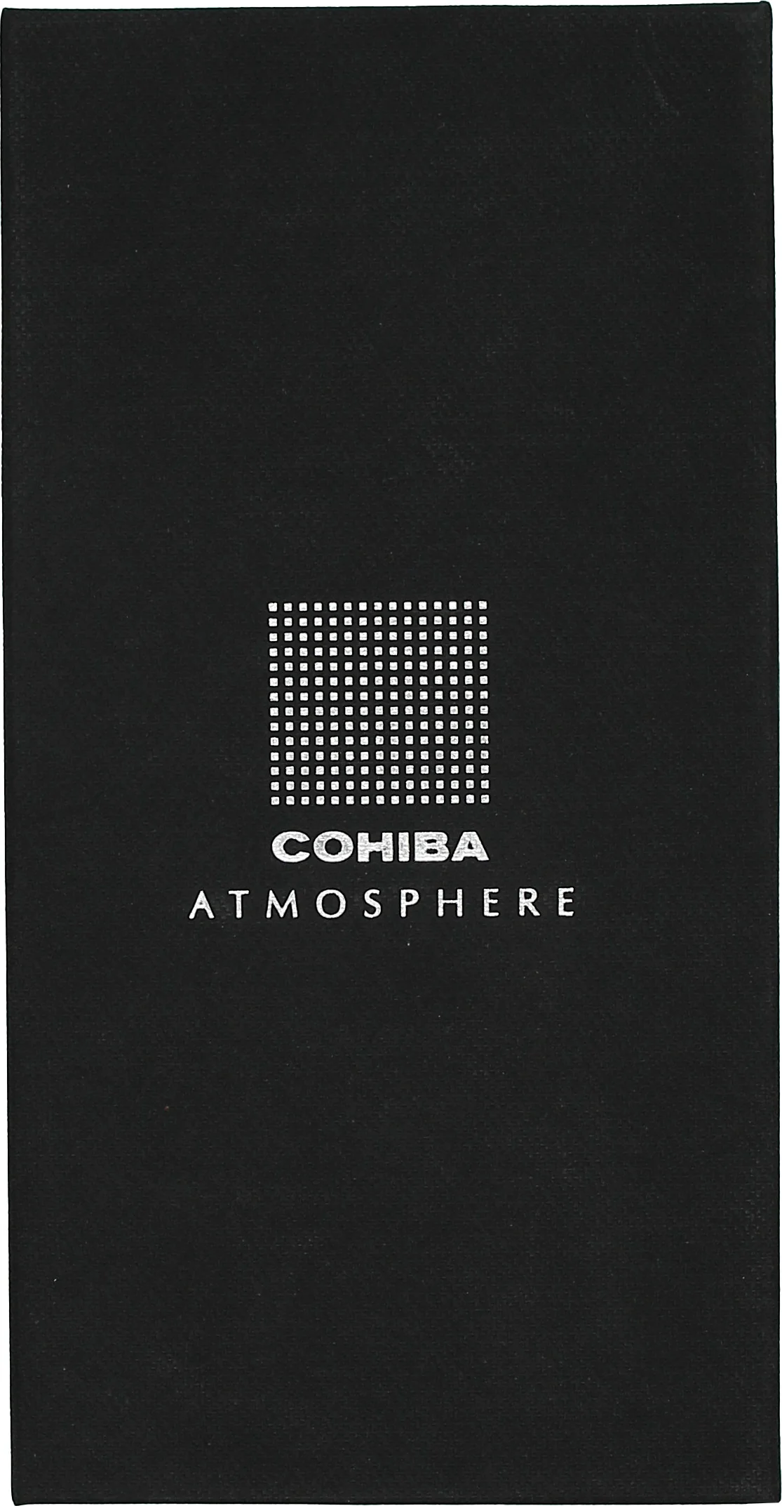 Sulla parte anteriore, l'elegante stampa del logo Cohiba Atmosphere in argento garantisce un riconoscimento immediato e conferisce all'astuccio un'aura di lusso e autenticità.