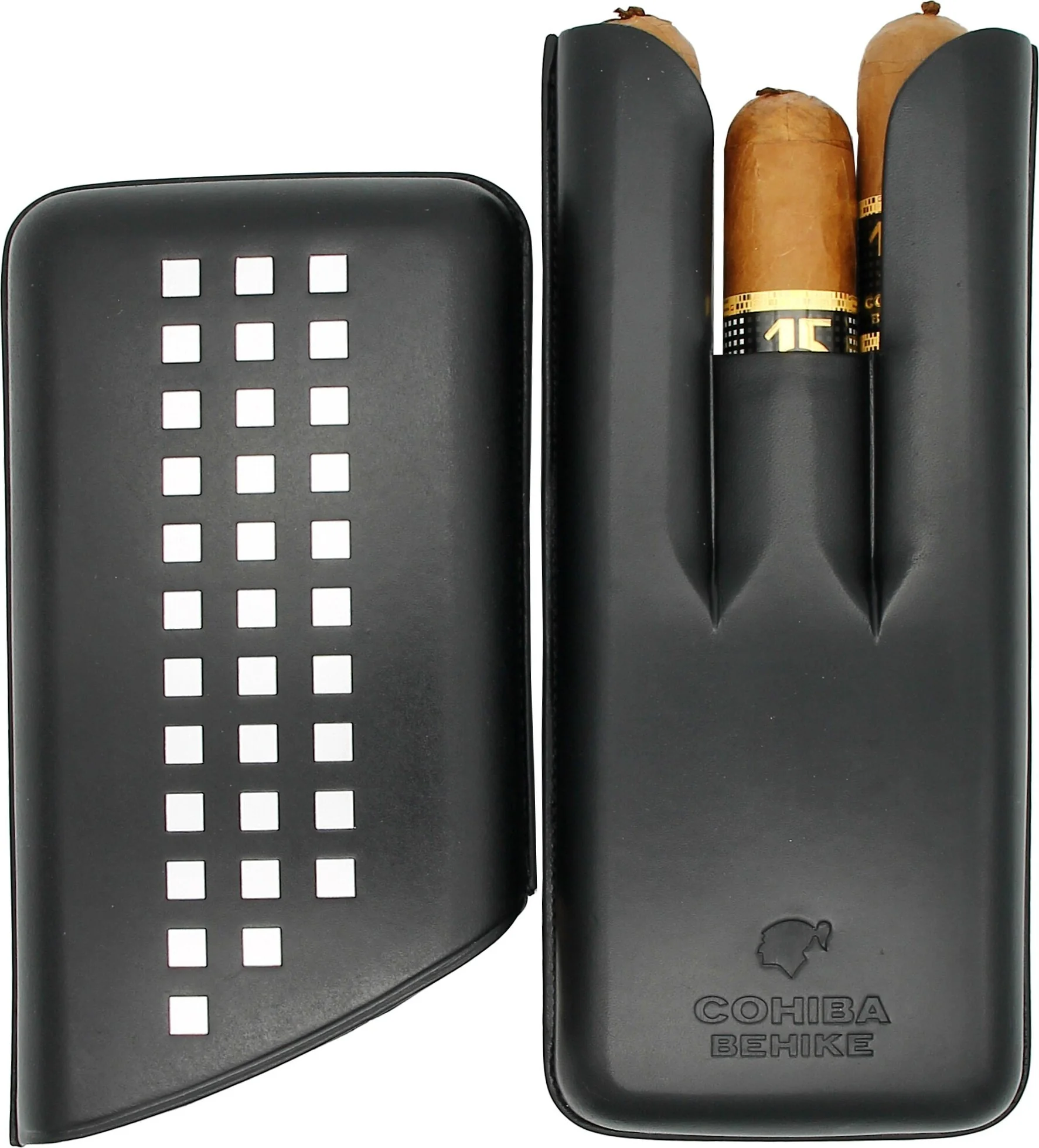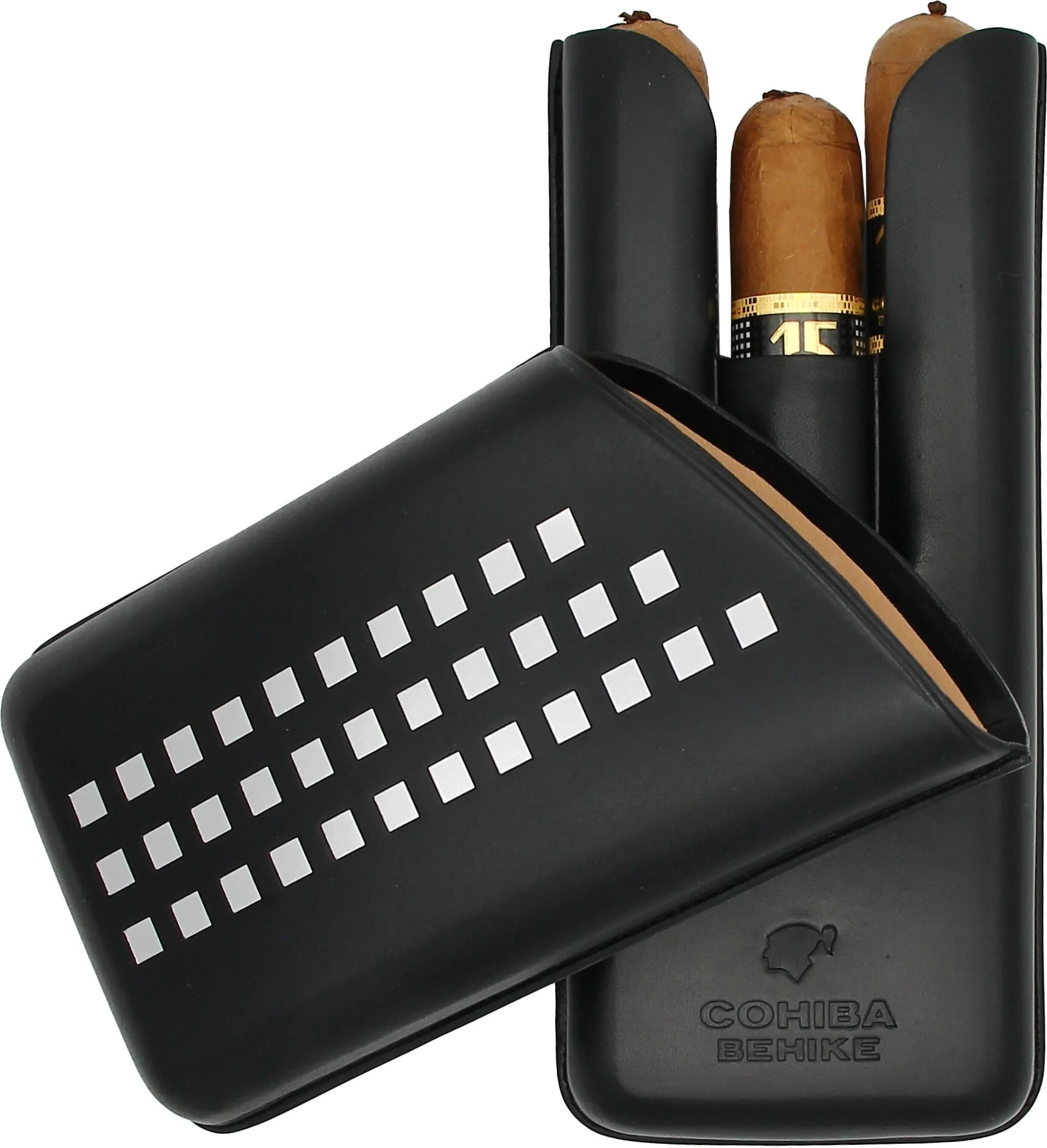 Custodia Tripla per Sigari Cohiba Behike in Pelle Nera