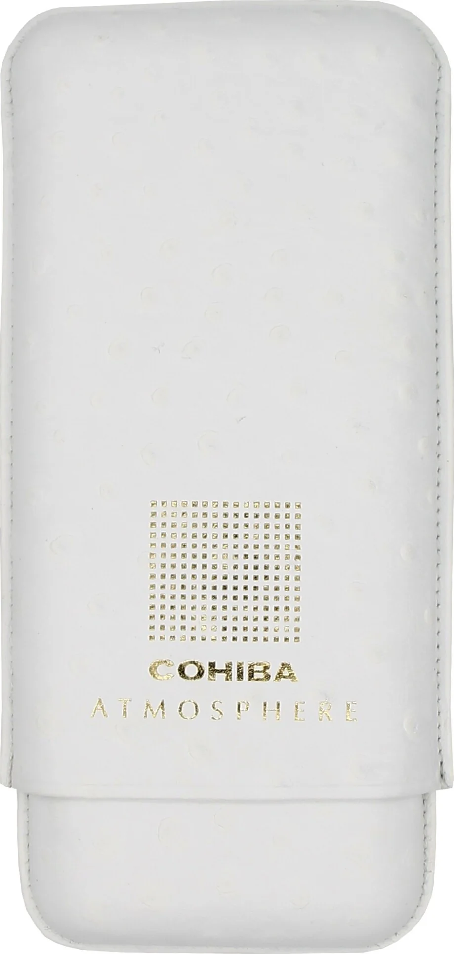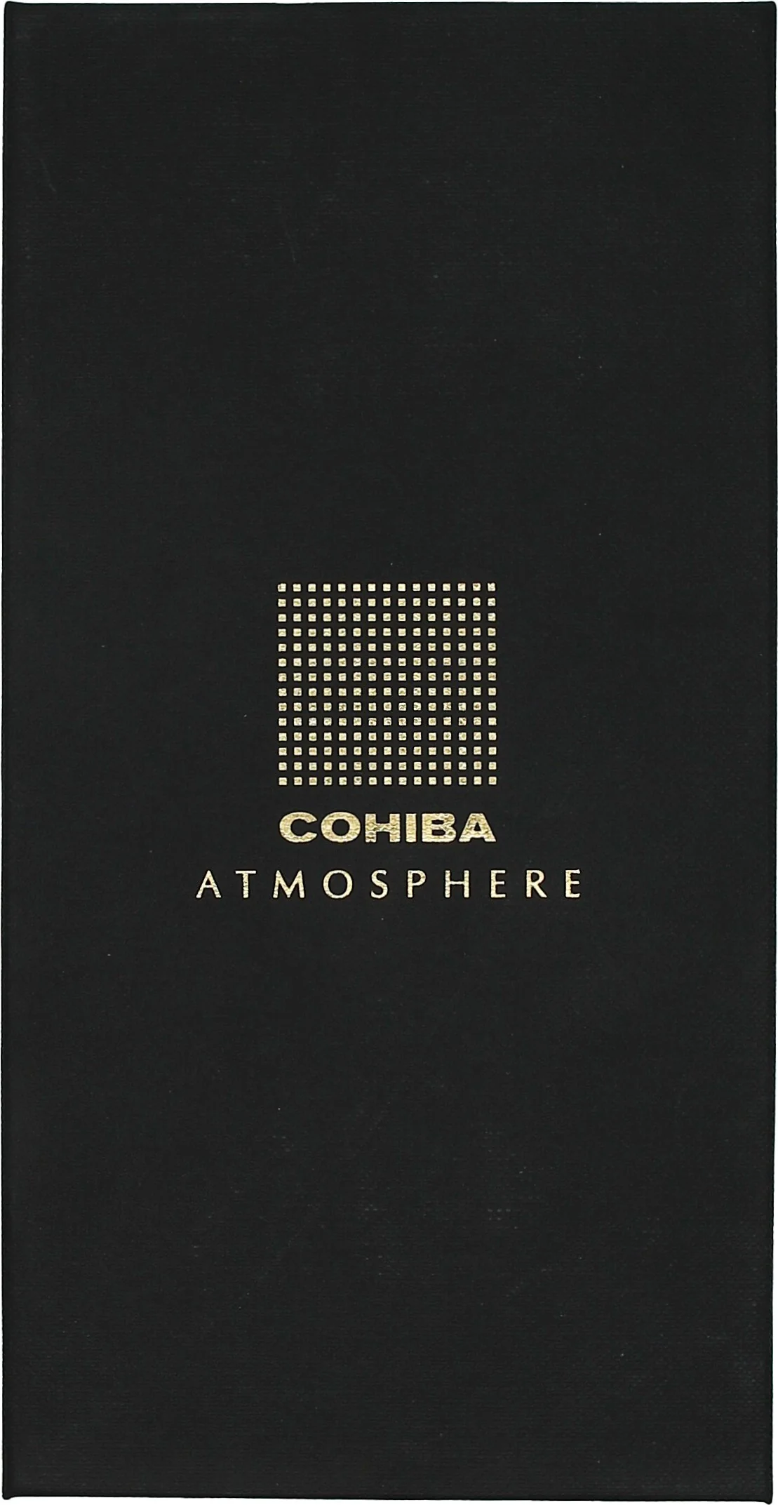 Sulla parte anteriore, l'elegante stampa dorata del logo Cohiba Atmosphere garantisce un riconoscimento immediato e conferisce all'astuccio un'aura di lusso e autenticità.