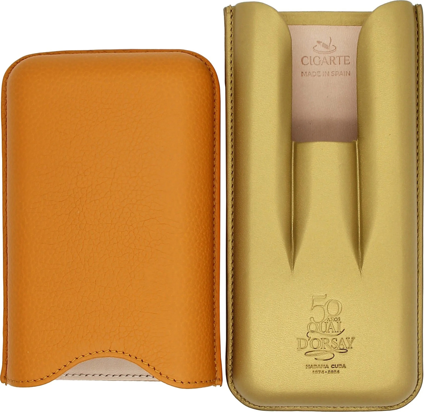- Produzione e Design: La custodia è stata prodotta dall'azienda spagnola Cigarte in Spagna. Presenta una combinazione di colori arancione ed elegante oro, con pelle goffrata nella parte superiore e pelle liscia nella parte inferiore.