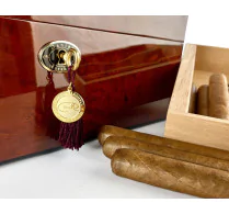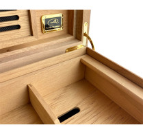 L'interno di ogni humidor è del migliore cedro Spagnolo Brasiliano, che offre un elevato assorbimento dell'umidità e che funziona con un umidificatore per mantenere un controllo ottimale dell'umidità. Il cedro esalta anche il gusto e l'aroma dei sigari, fornendo lo spazio ideale per l'invecchiamento del sigaro.