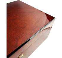 Dai modelli da viaggio e da tavolo ai grandi scrigni del tesoro, ogni humidor Daniel Marshall è realizzato utilizzando solo materiali di altissima qualità. I legni duri a grana bella o radica sono una specialità Marshall, con bordi di ebano nero che aggiungono un'elegante raffinatezza all'aspetto dell'humidor. La famosa finitura a 1000 strati di Daniel Marshall aggiunge strati su strati di lacca agli umidificatori per un sorprendente aspetto lucido che mette in risalto tutto il meglio della venatura del legno.
