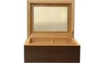 L'humidor presenta una impiallacciatura satinata< /b> di legno di wengé, un legno forte e seducentemente scuro originario dell'Africa centrale che viene spesso utilizzato come alternativa all'ebano. Un pannello in vetro aggiunge un aspetto contemporaneo al coperchio che darà un'aria di raffinatezza a qualsiasi arredamento. L'interno è rivestito in cedro Spagnolo, fornendo il luogo di riposo ideale fino a 50 dei tuoi sigari Corona preferiti. Puoi tenerli organizzati con un divisorio incluso. Le cerniere del quadrante premium consentono un movimento di apertura e chiusura regolare del coperchio.