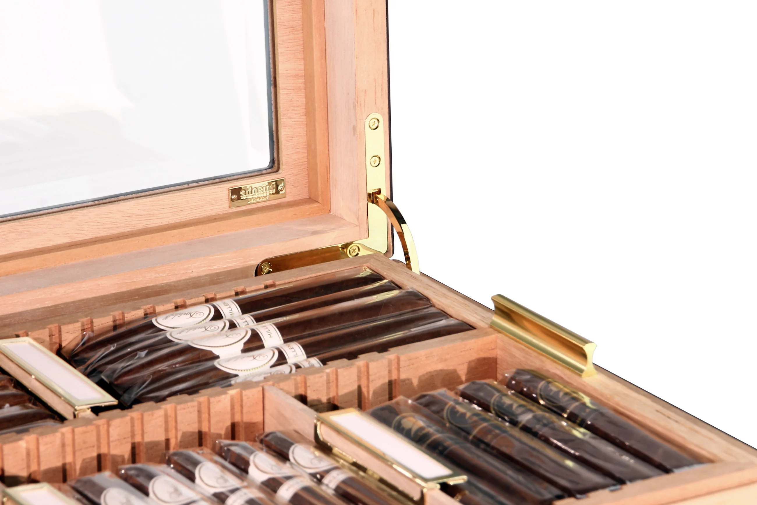 - I vassoi per i singoli sigari e le scatole possono essere inseriti e posizionati ad angolo per una presentazione ottimale.