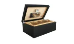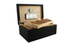 L'humidor adorini Torino Grande Deluxe, un classico del marchio adorini, è la versione di grande formato del popolare humidor medio. Con una capacità fino a 125 sigari, offre spazio sufficiente per una vasta collezione di sigari. Colpisce per la sua finitura nera opaca e le cerniere in argento, che gli conferiscono un aspetto nobile. L'humidor ha un corpo extra resistente ed è impiallacciato in legno di cedro all'interno per garantire condizioni di conservazione ottimali.