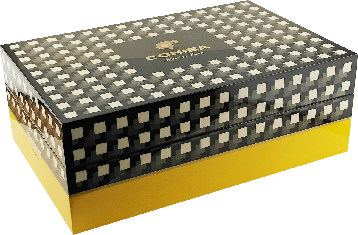 L'humidor è presentato negli inconfondibili colori Cohiba, nero, giallo e bianco, che gli appassionati di tutto il mondo associano immediatamente al marchio. Il logo del marchio Cohiba è ben visibile sul coperchio. All'apertura, si scoprono cerniere dorate di alta qualità, sulle quali è impresso il nome Cohiba. All'interno è presente una targhetta che indica il numero individuale dell'edizione limitata.