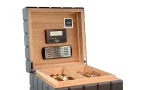 Questo moderno e futuristico humidor a cubo del marchio Colibri colpisce per il suo design geometrico e l'elegante colore grigio antracite. Un assoluto colpo d'occhio che aggiunge stile ed eleganza a qualsiasi ambiente. L'humidor ha spazio per circa 60 sigari e colpisce per il suo design interno ben studiato.