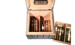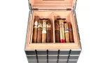 L'interno è diviso in due aree: un livello rimovibile per conservare i singoli sigari, dotato di un divisorio verticale flessibile per una migliore organizzazione. Anche le scatole di sigari più piccole possono essere riposte nell'area inferiore, supportata da un altro divisorio posizionabile in modo flessibile.