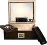 Questo set inizia con un humidor splendidamente realizzato con un'accattivante impiallacciatura in legno di ferro. Le venature chiare e scure sono perfettamente evidenziate da una finitura lucida di pianoforte. Un piano in vetro mantiene la tua collezione di sigari in piena vista, mentre un igrometro digitale montato sulla parte anteriore dell'humidor ti permette di tenere d'occhio i livelli di umidità interna. L'interno in cedro Spagnolo e l'umidificatore a polimeri acrilici incluso forniscono una casa sicura per un massimo di 50 sigari Corona.