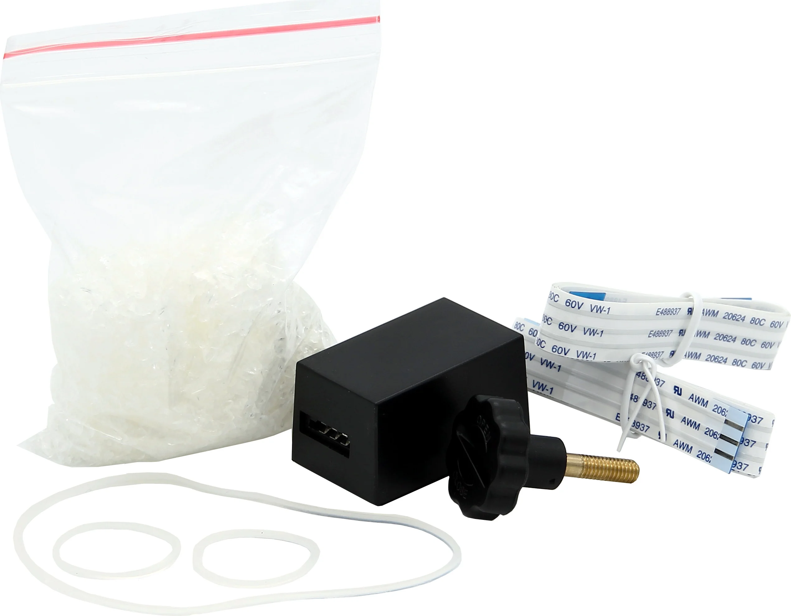 Il kit include una confezione di cristalli per il serbatoio dell'acqua. Questi assicurano una distribuzione uniforme dell'umidità. Il contenuto della confezione è progettato per essere sostituito più volte. Per motivi igienici e per mantenere le prestazioni dell'umidificatore, si consiglia di sostituire regolarmente i cristalli. È incluso anche un set di tre pezzi di anelli di tenuta, che assicurano una chiusura ermetica tra il serbatoio e l'unità ventilante. In questo modo il sistema funziona in modo affidabile ed efficiente. Inoltre, il kit di manutenzione include un doppio set di cavi piatti con il connettore corrispondente per l'alimentatore, ideale per sostituire o rinnovare i componenti quando necessario. Una vite di ricambio per fissare saldamente il serbatoio dell'acqua alla parte superiore completa il set.