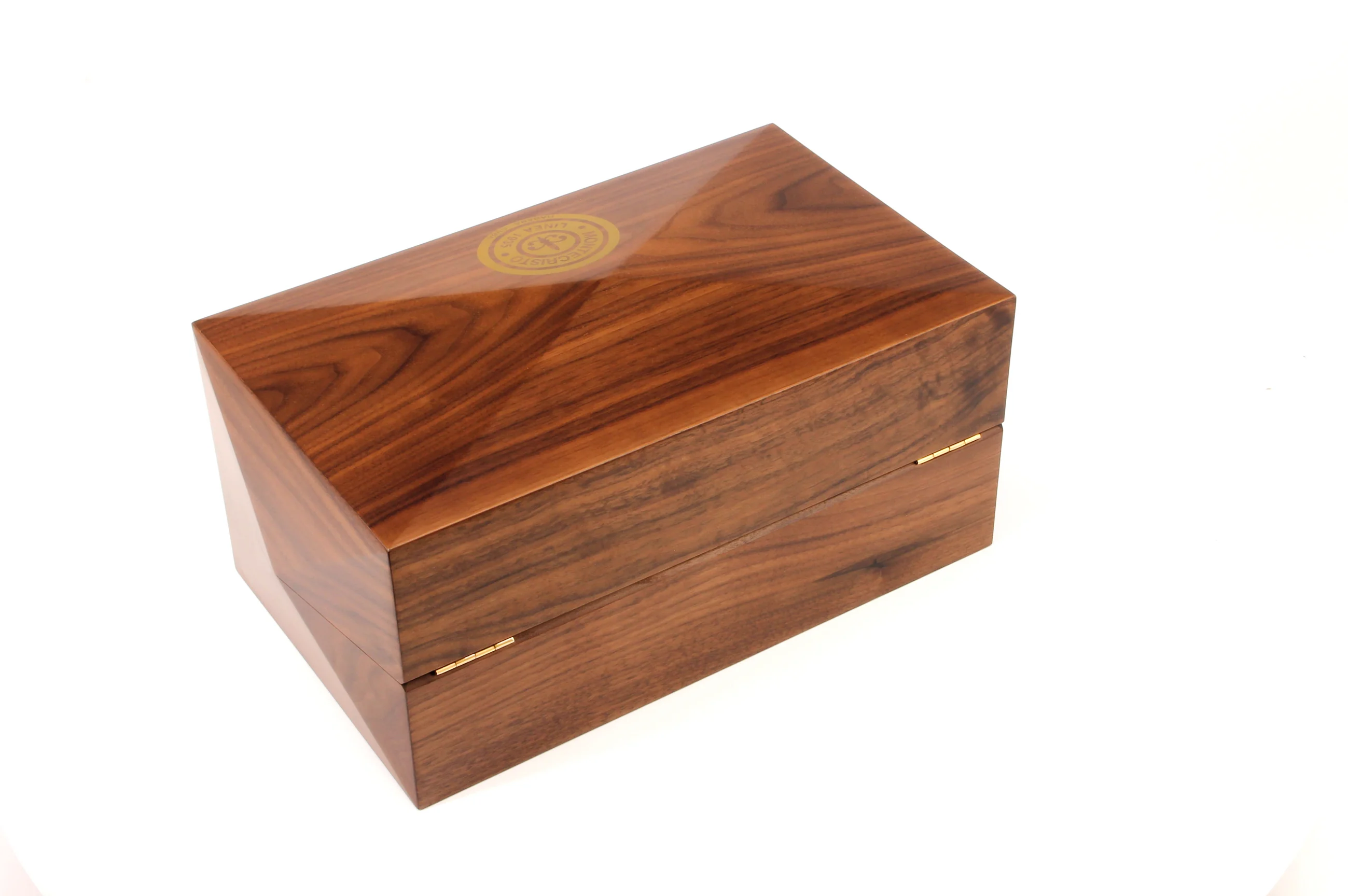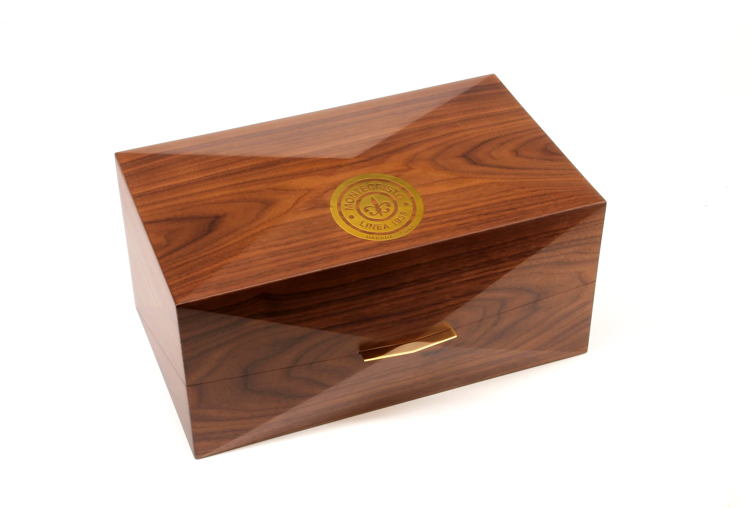 Questo straordinario humidor in edizione limitata è stato realizzato in Italia in legno di cedro massiccio, per un centrotavola robusto e duraturo per qualsiasi stanza. Ogni lato dell'humidor è smussato e decorato con una finitura marrone scuro che ricorda la lacca Carmelitana delle scatole per sigari Linea 1935. Un logo Montecristo rotondo color oro poggia sulla parte superiore del coperchio, che può essere facilmente sollevato con un manico dorato.