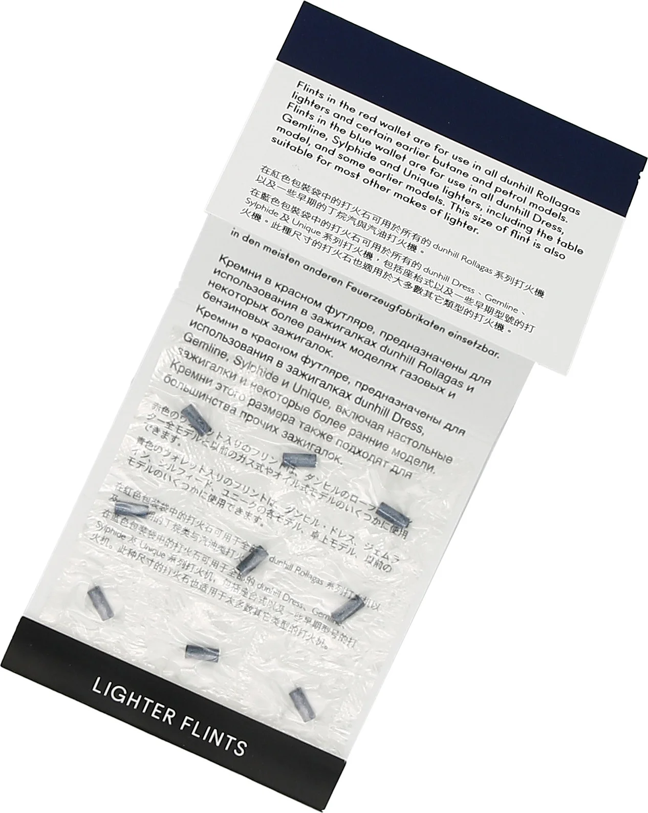 Le pietre focaie Dunhill di misura A (blu) sono state progettate appositamente per gli accendini Dunhill della linea "Unique". Una confezione contiene 9 pietre focaie di alta qualità che garantiscono un'accensione affidabile e una lunga durata del tuo accendino Dunhill.