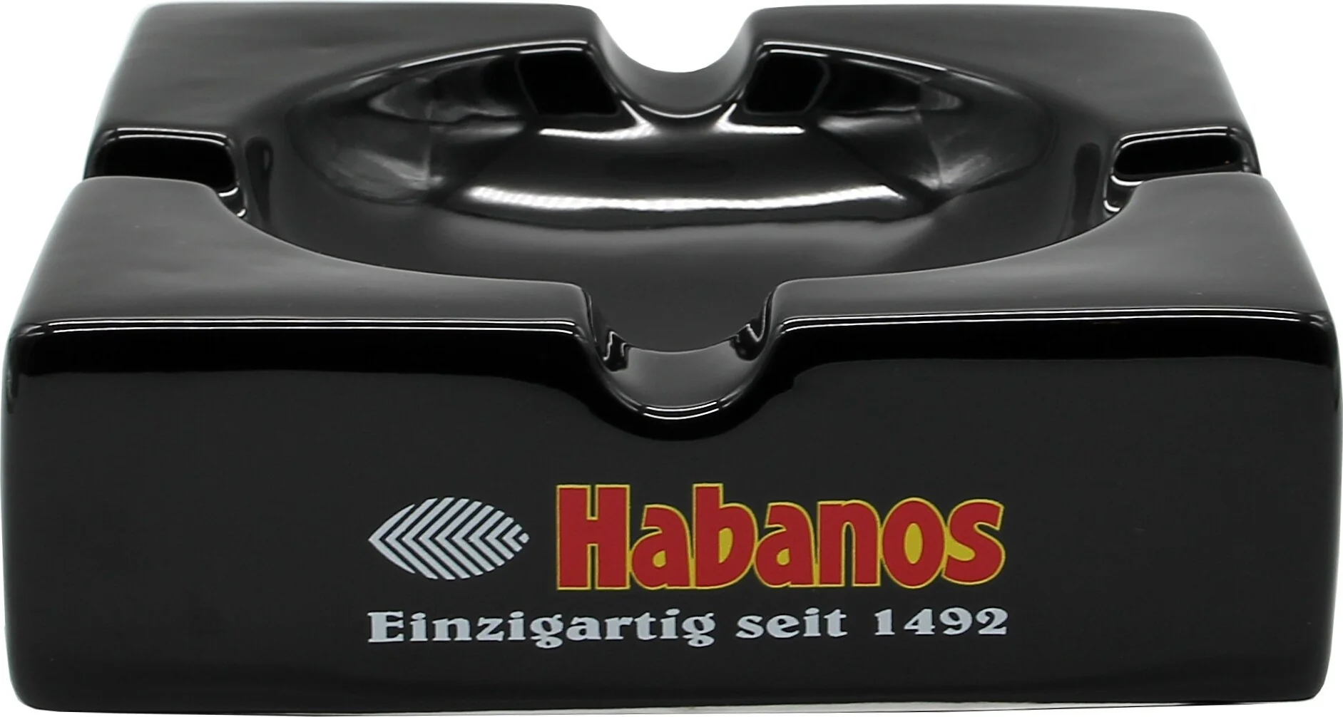 Questo posacenere quadrato in porcellana di Habanos colpisce per l'elegante finitura nera e la scritta in tedesco "Unique since 1492", che si riferisce all'anno di fondazione di Habanos e che adorna la parte anteriore del posacenere. È l'ideale per godersi i sigari in compagnia, poiché è dotato di quattro poggia sigari di dimensioni generose.