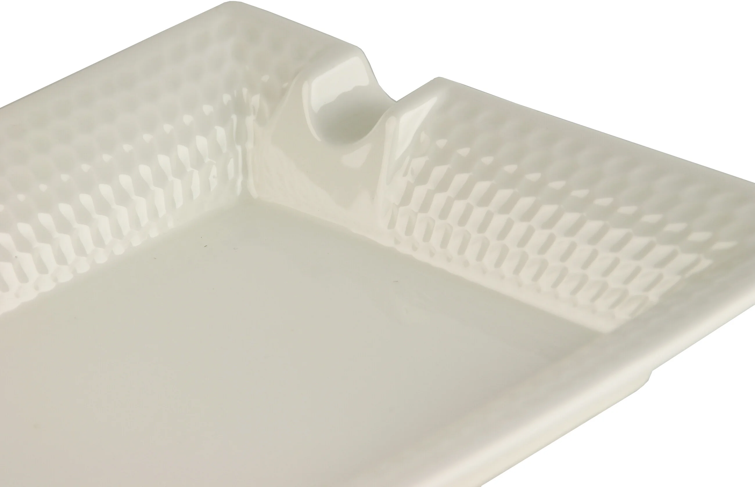 Posacenere per sigari in ceramica bianca con texture a nido d'ape