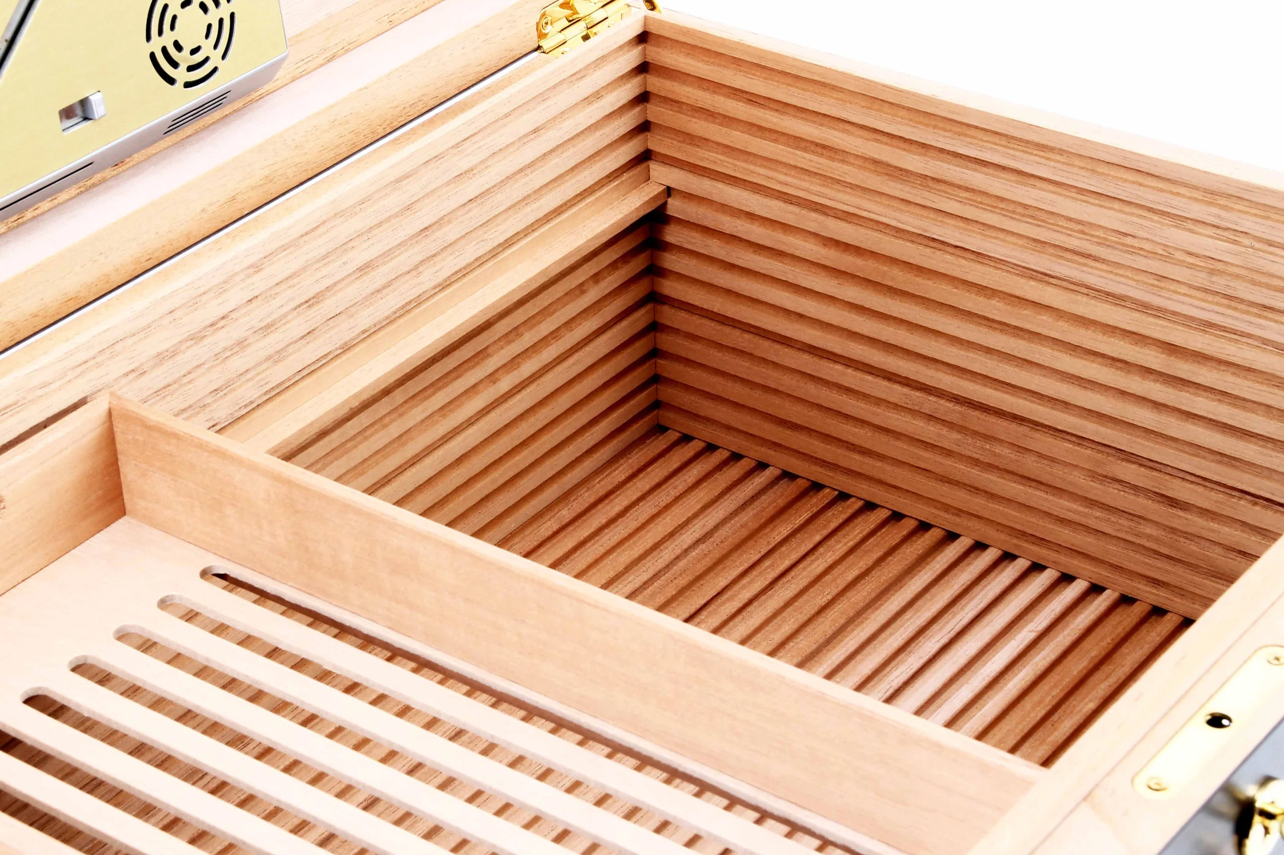 Listelli di ventilazione unici ("RibTech") per una migliore circolazione dell'aria all'interno dell'humidor. Innovazione adorini protetta