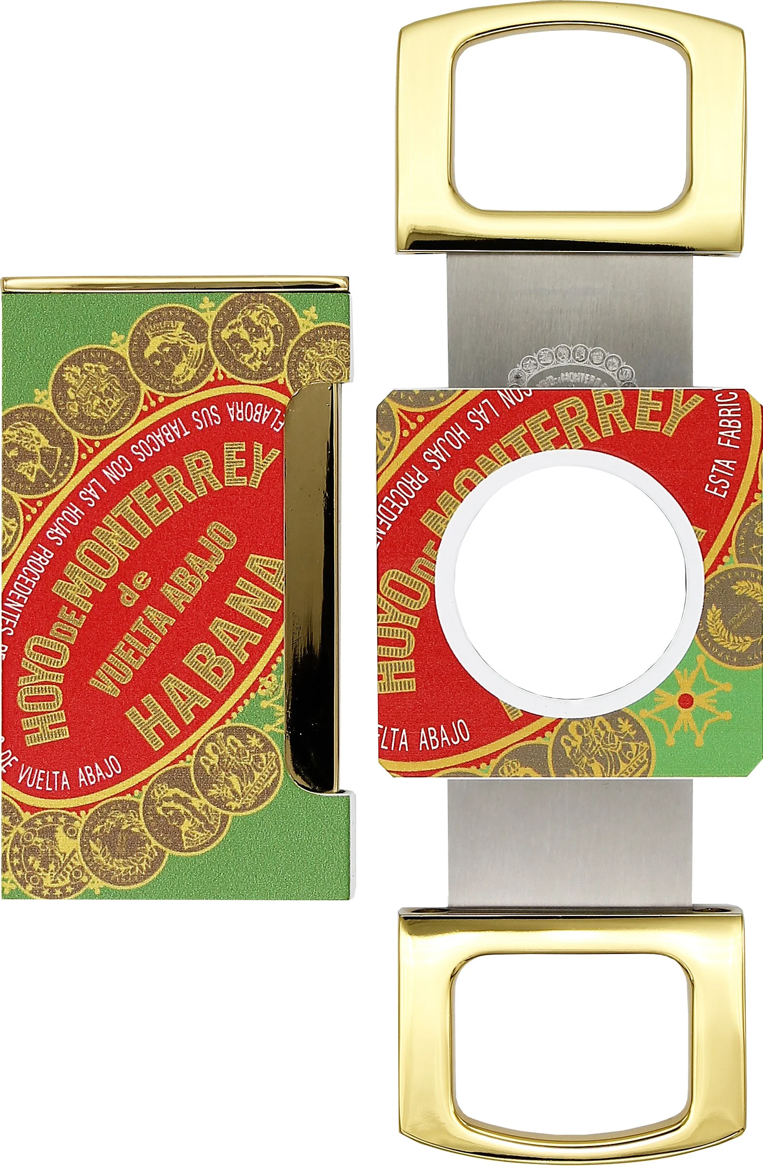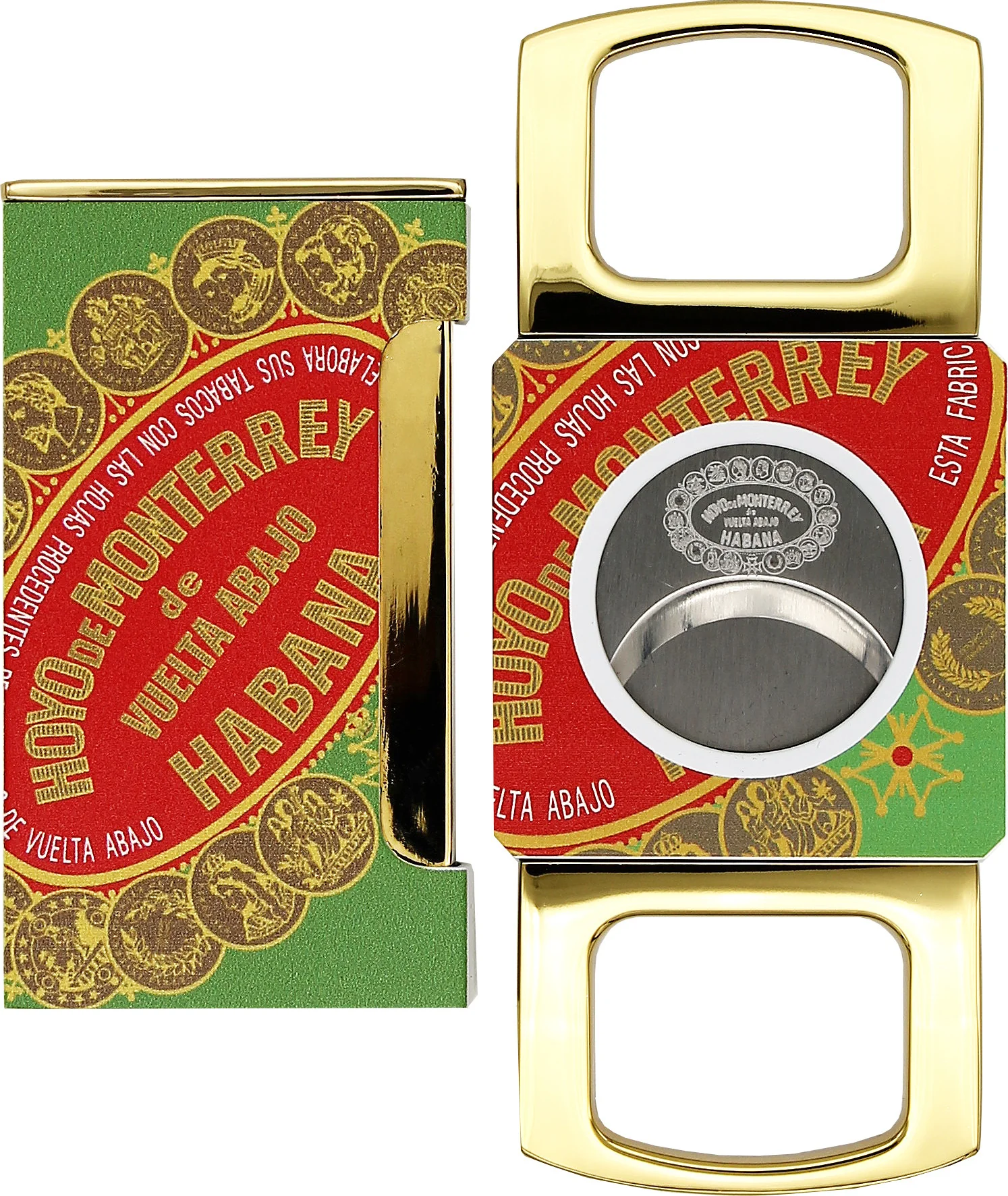 I disegni verdi e rossi di Hoyo de Monterrey sono completati da brillanti accenti dorati, che conferiscono un aspetto esclusivo sia all'accendino che al taglierino. L'interazione tra i colori del marchio, l'oro e l'artigianato di alta qualità rende questo set un compagno elegante e moderno per ogni appassionato di sigari.