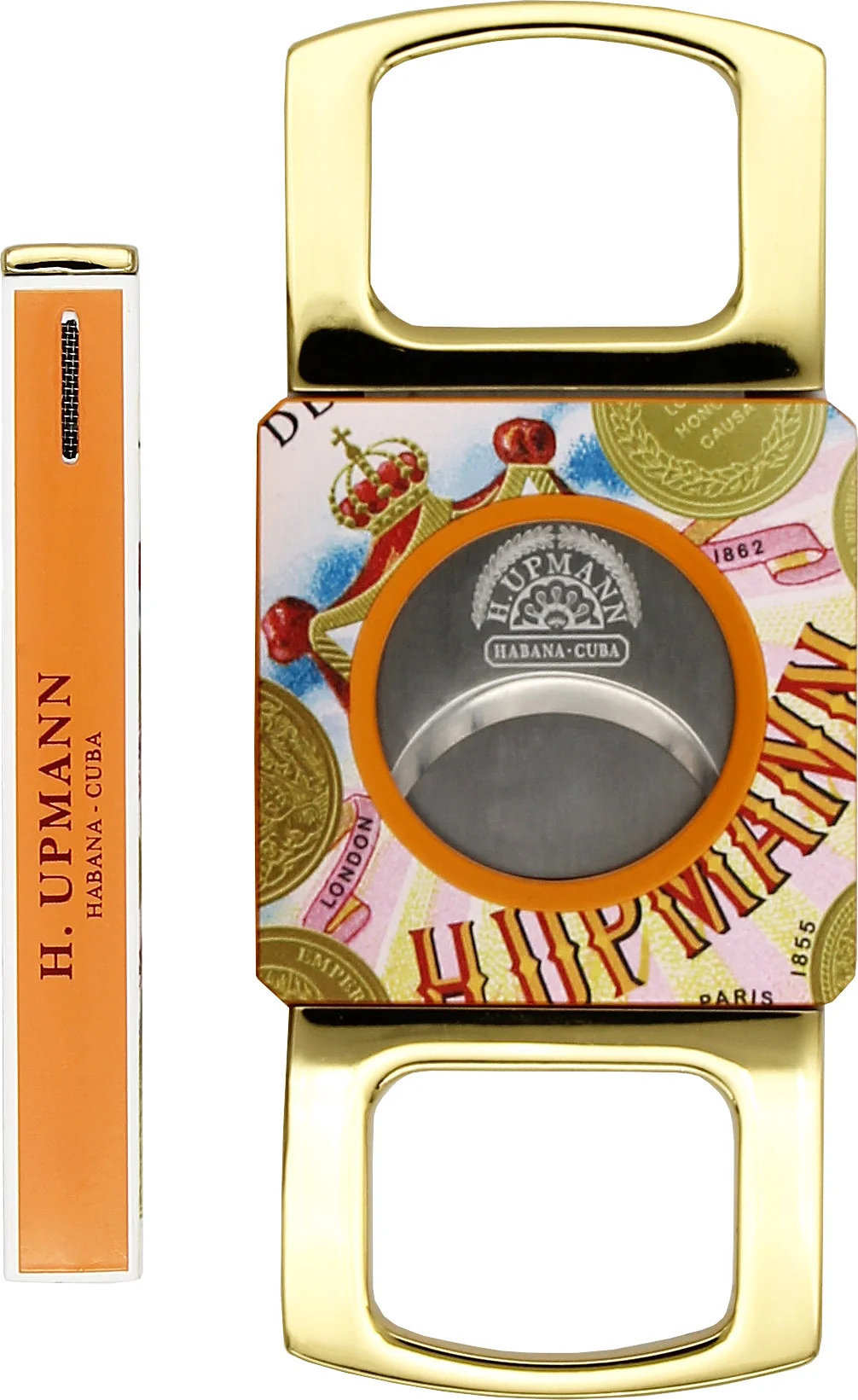 - Decorazione su due lati con motivi a medaglione e il logo H. Upmann nei toni dell'arancione