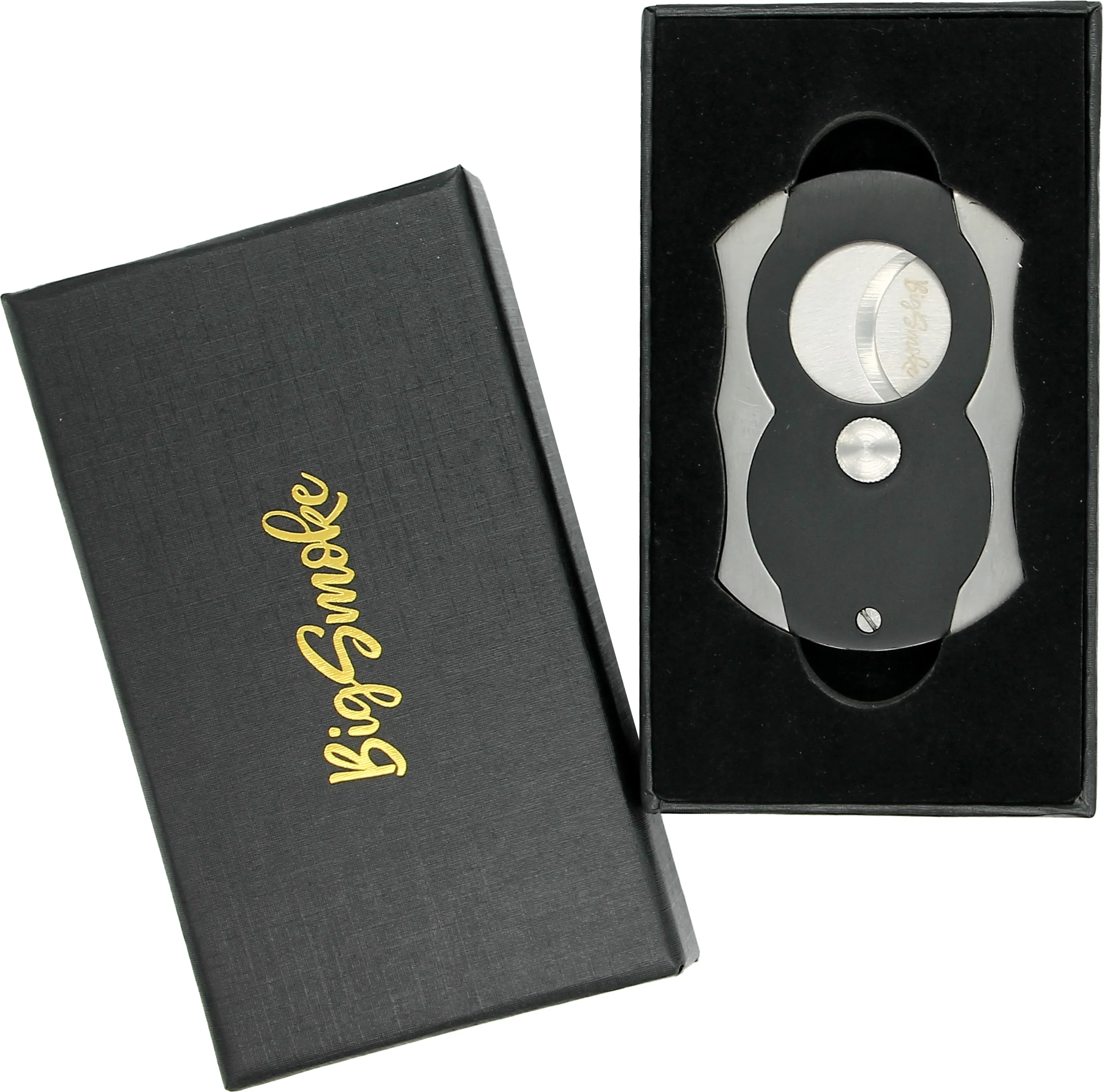 - Tagliasigari a doppia lama del marchio BigSmoke in nero e argento