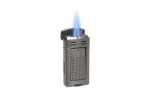 - Fiamma a doppio getto a prova di vento, in cui le fiamme si assottigliano l'una verso l'altra per garantire un'accensione precisa e sicura del sigaro senza annerire accidentalmente l'involucro.